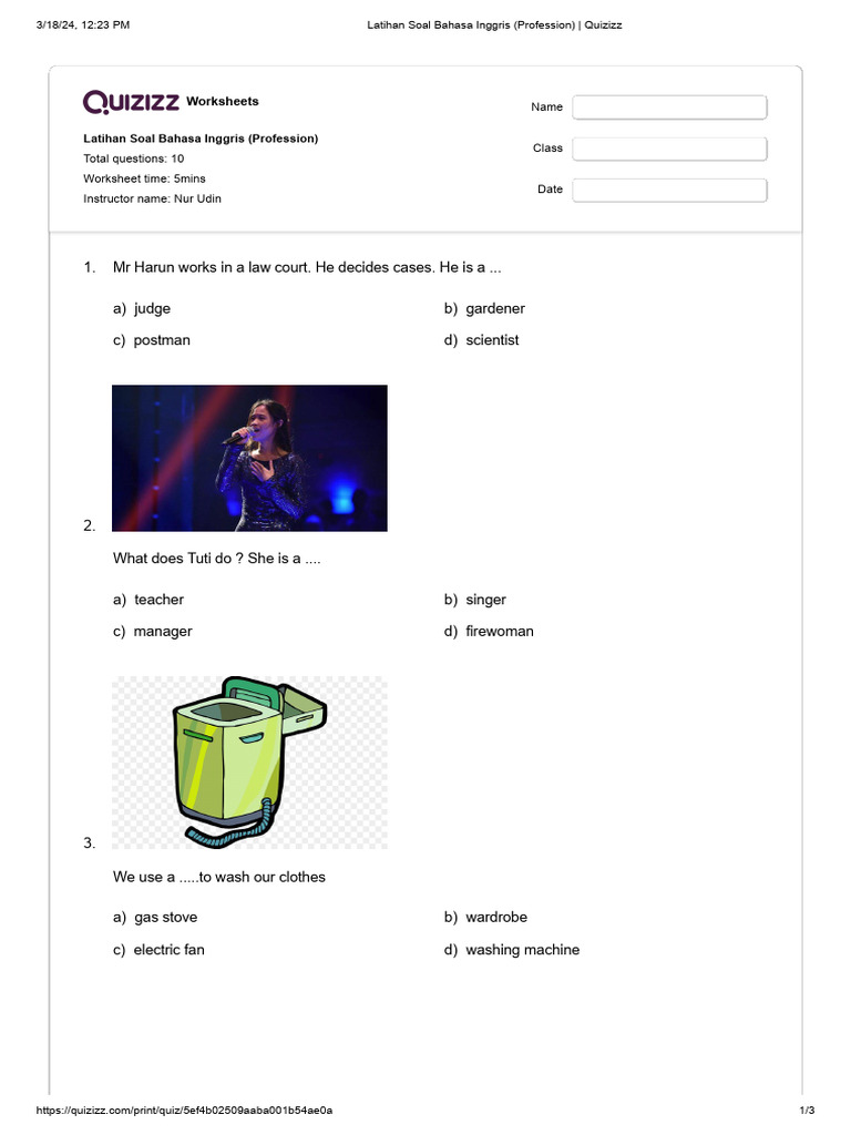 (Jawaban: her) - The cat is playing with ___. (it / its) (Perhatikan, untuk kelas 3, fokus pada ‘it’ sebagai objek benda. ‘Its’ adalah possessive, jadi hindari dulu jika belum diajarkan).