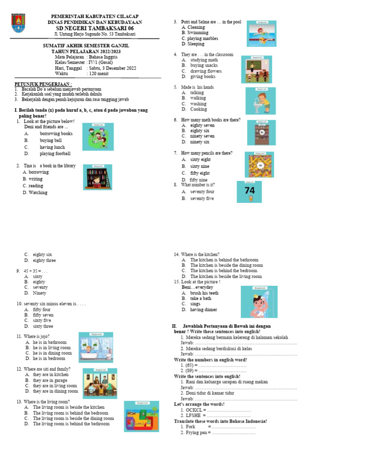 Petunjuk Umum: Bacalah setiap soal dengan cermat dan jawablah sesuai dengan instruksi yang diberikan.